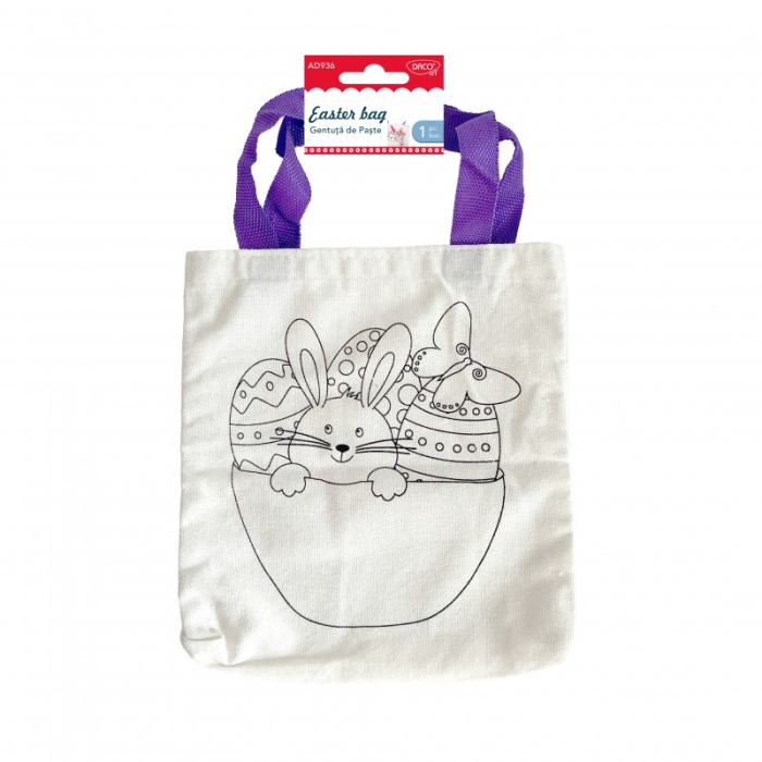 Gentuța de Paște DACO - AD936 este un accesoriu ideal pentru cei pasionați de craft și activități creative. Această gentuță din material textil se pretează perfect proiectelor de primăvară, oferind posibilitatea de a fi personalizată cu ușurință. Transformă fiecare detaliu în funcție de preferințele tale, aducând un strop de originalitate decorurilor de sărbători.