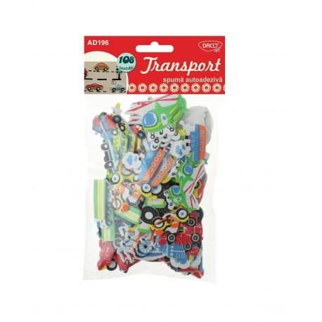 Setul contine 108 bucati mijloace de transport, ideale pentru proiectele de lucru manual.Material: spuma autoadeziva.Dimensiuni variabile.