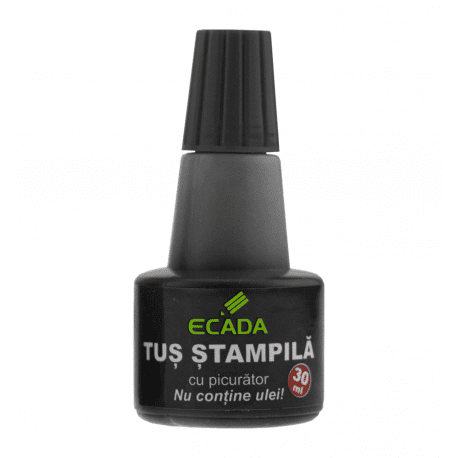 Tusul de stampila ECADA de 30ml, in culoare neagra, este solutia ideala pentru o utilizare eficienta si organizata in mediul de birou. Acest produs asigura o aplicare rapida si precisa, fiind dotat cu un aplicator ingenios care faciliteaza utilizarea. Recipientul din plastic transparent permite vizibilitatea continutului ramas, asigurandu-va ca nu veti ramane niciodata fara tus in momentele cheie.