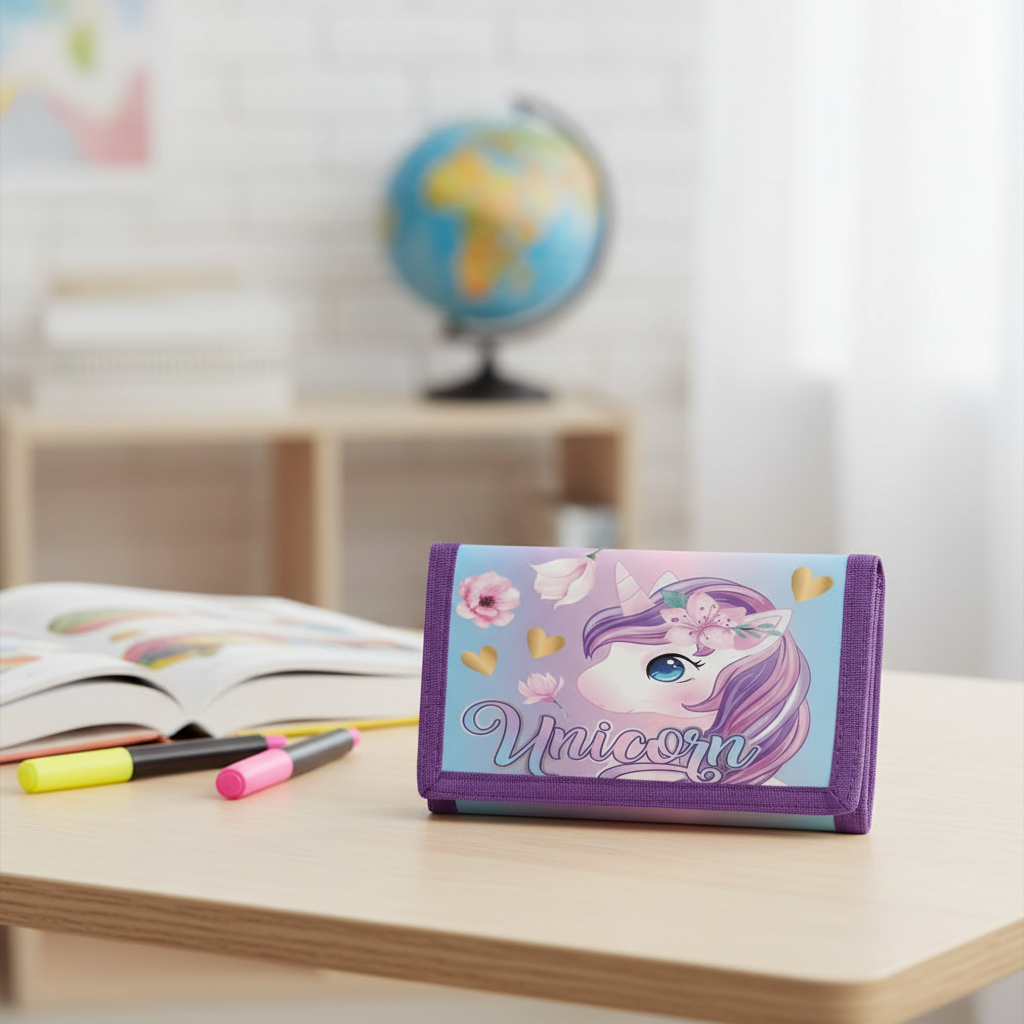 Portmoneul Unicorn este un accesoriu esențial pentru micuțele tale! Acesta ajută la organizarea banilor și a cardurilor, fiind ideal pentru fiecare zi la școală. Cu un design atractiv, portmoneul îmbină utilitatea cu distracția.