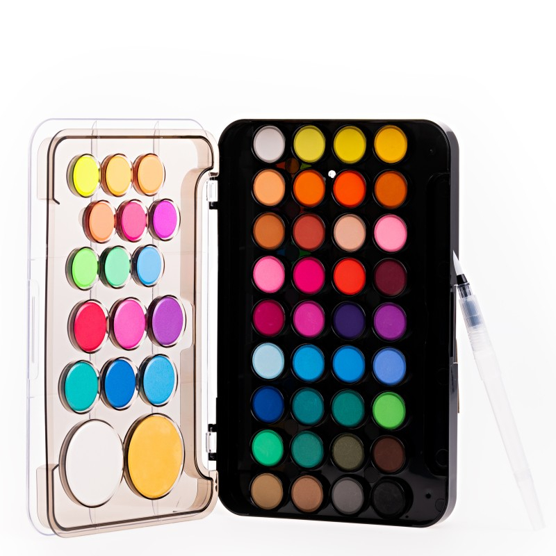 Utilizare: Se pictează cu apă pentru un efect strălucitor, iar culorile se pot amesteca pe paletă pentru nuanțe personalizate. Asigurați-vă că le închideți bine pentru a preveni uscarea.