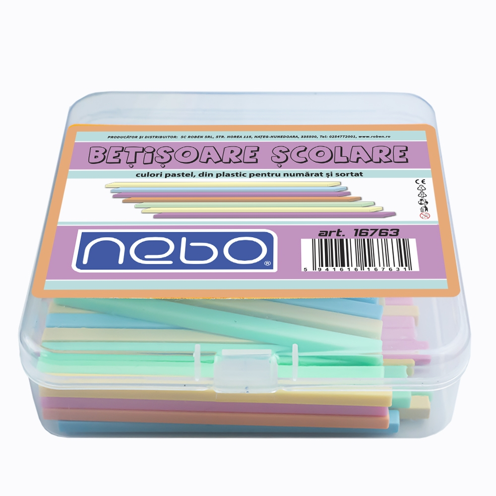 Utilizare: Bețișoarele pot fi folosite pentru a învăța numărarea, adunarea, scăderea și pentru a crea modele simple. Ele sunt ușor de manevrat, permițând elevilor să exploreze concepte matematice prin joc.