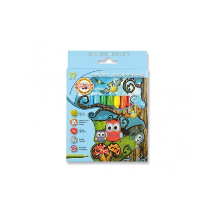 Carioca 12 culori Owls de la Koh-I-Noor este un set creativ destinat micilor artiști, perfect pentru desen și teme școlare. Aceste carioci sunt ușor de folosit și vin în 12 culori vibrante, ideale pentru a crea opere de artă frumoase. În plus, fiind lavabile, nu trebuie să îți faci griji de pete pe haine!