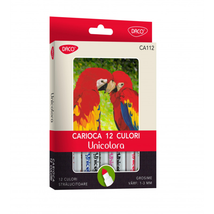 Carioca 12 culori varf conic unicolora Daco este un set de carioci care aduce la viață imaginația copiilor. Aceste carioci sunt ideale pentru a adăuga culoare temelor școlare sau pentru a crea opere de artă în timpul liber, ajutând la dezvoltarea abilităților artistice și a creativității.