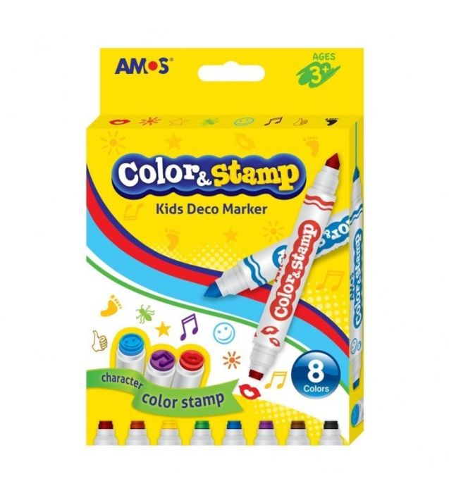 Carioca Amos Color&Stamp este un set de 8 culori vibrante, perfect pentru micii artiști. Acest instrument de scriere oferă posibilitatea de a crea opere de artă pe hârtie, carton sau pânză de pictură, ajutându-i pe copii să-și dezvolte creativitatea. Cu un capăt conic pentru detalii precise și un capăt de tip stampilă pentru forme jucăușe, această carioca stimulează imaginația și performanța școlară într-un mod distractiv.
