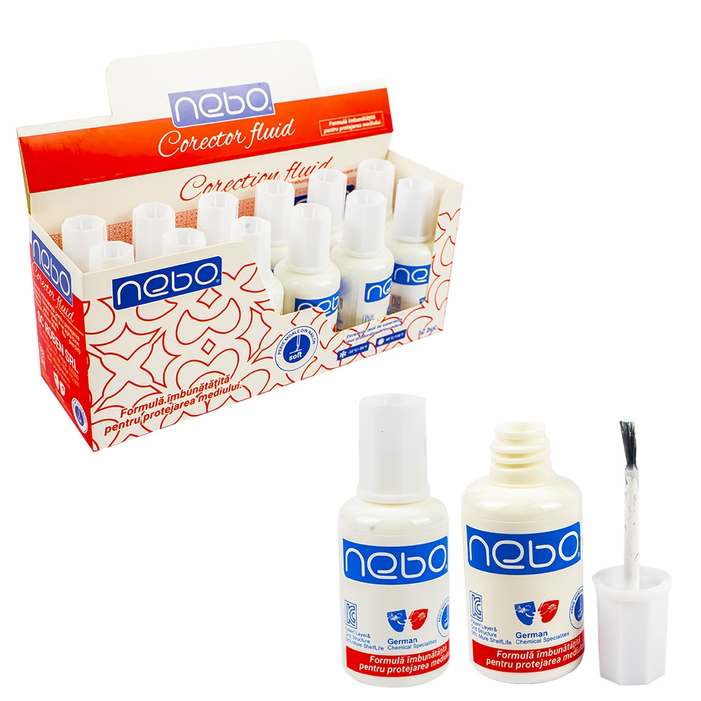 Corectorul fluid NEBO de 12 ml este un instrument esențial atât pentru birou, cât și pentru mediu școlar. Acesta oferă o acoperire excelentă, uscare rapidă și un design compact, ideal pentru a fi transportat cu ușurință.