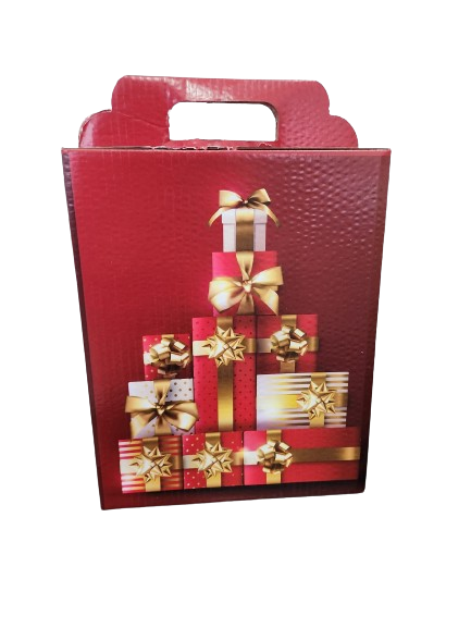 Experimentați bucuria sărbătorilor cu această cutie de cadou model Craciun! Un ambalaj perfect pentru a împărtăși magia Crăciunului cu cei dragi!