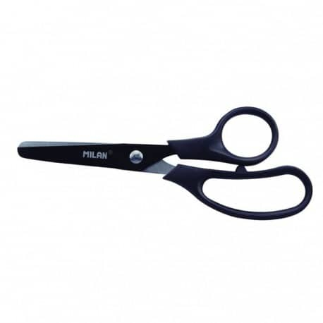 Foarfeca basic de 13,4cm MILAN Neagra este un instrument esențial pentru orice elev, ajutând la tăierea diverselor materiale precum hârtie, carton sau textil. Construcția din inox asigură durabilitate, iar manerul din plastic permite utilizarea confortabilă. Vârful rotunjit oferă siguranță copiilor, făcând-o potrivită pentru utilizare zilnică.
