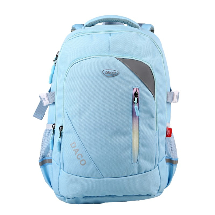 Ghiozdanul DACO 46 cm este accesoriul esențial pentru orice elev sau student, având un design ergonomic ce asigură confort în utilizare pe parcursul întregii zile. Acesta dispune de un compartiment principal încăpător pentru cărți și caiete, alături de trei compartimente secundare, în care pot fi depozitate obiecte personale și materiale necesare studiului. Cu buzunare laterale dedicate, permite transportul facil al unei sticle de apă sau al altor mici accesorii.