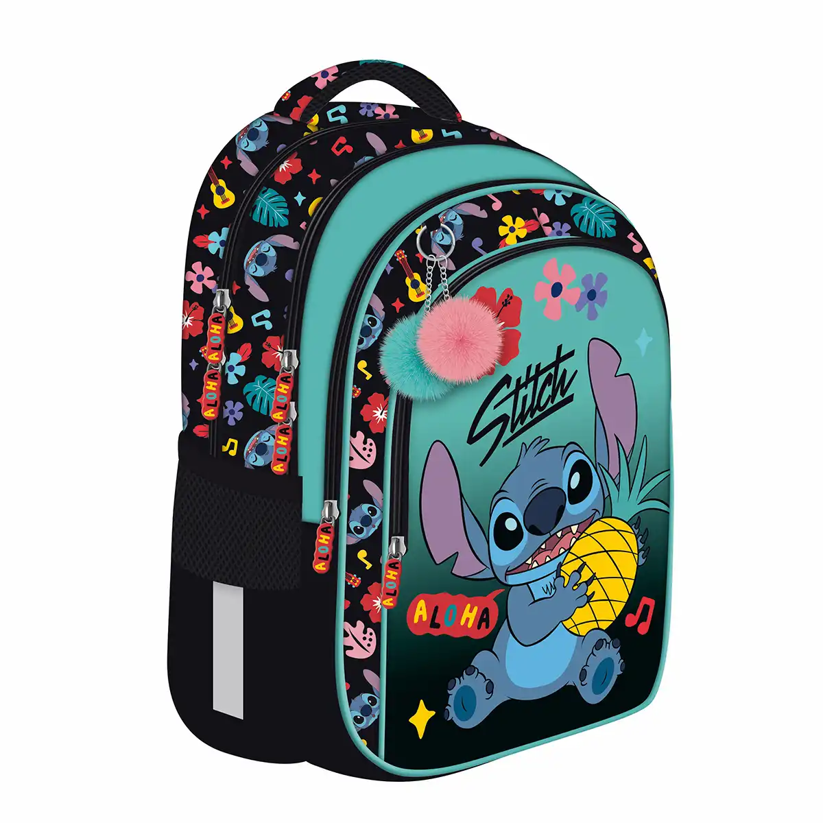 Ghiozdan scolar Majewski,Stitch Black Aloha, 4 compartimente, 40x28x18 cm