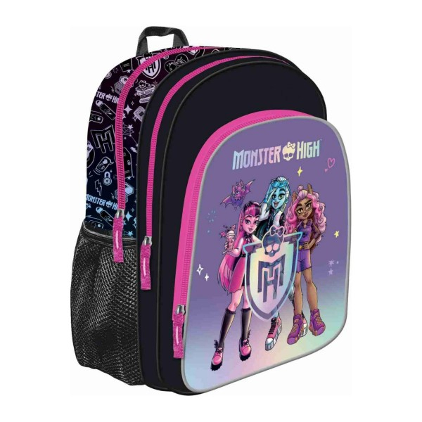 Ghiozdan St.Majewski Monster High, 38cm, 3 compartimente, negru cu mov