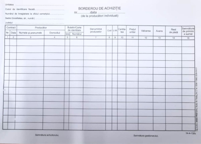 Utilizare: Utilizați acest borderou pentru a documenta achizițiile de materiale sau bunuri, facilitând astfel o contabilitate mai clară și o organizare eficientă a documentelor.