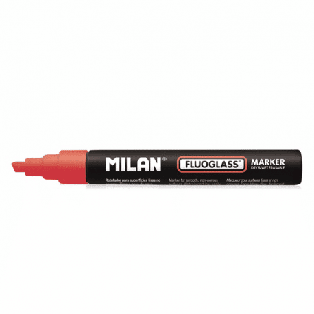 Markerul pentru sticlă Fluoglass MILAN roșu este un instrument versatil, perfect pentru desen și scriere pe suprafețe netede precum sticlă și ceramică. Cu un vârf tăiat care permite o grosime a scrierii de 2-4 mm, acesta asigură o aplicare precisă a cernelei, care se poate curăța ușor cu o cârpă umedă sau uscată.