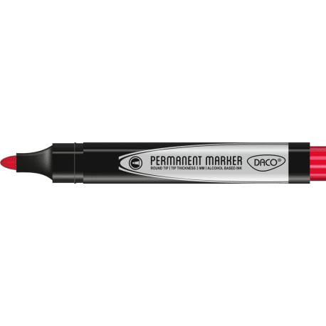 Markerul Permanent Rosu DACO MK130 este un instrument indispensabil atât pentru elevi, cât și pentru mediul de birou, fiind utilizat cu succes pentru scrierea pe diverse suprafețe. Cu un vârf rotund de 3 mm, acest marker permite o aplicație precisă și confortabilă.