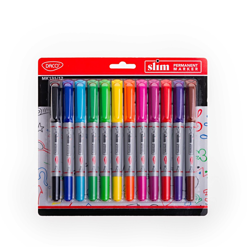 Markerul Permanent SLIM Set 12 este soluția perfectă pentru elevi, studenți și profesioniști, oferind o gamă variată de culori intense pentru scriere permanentă.