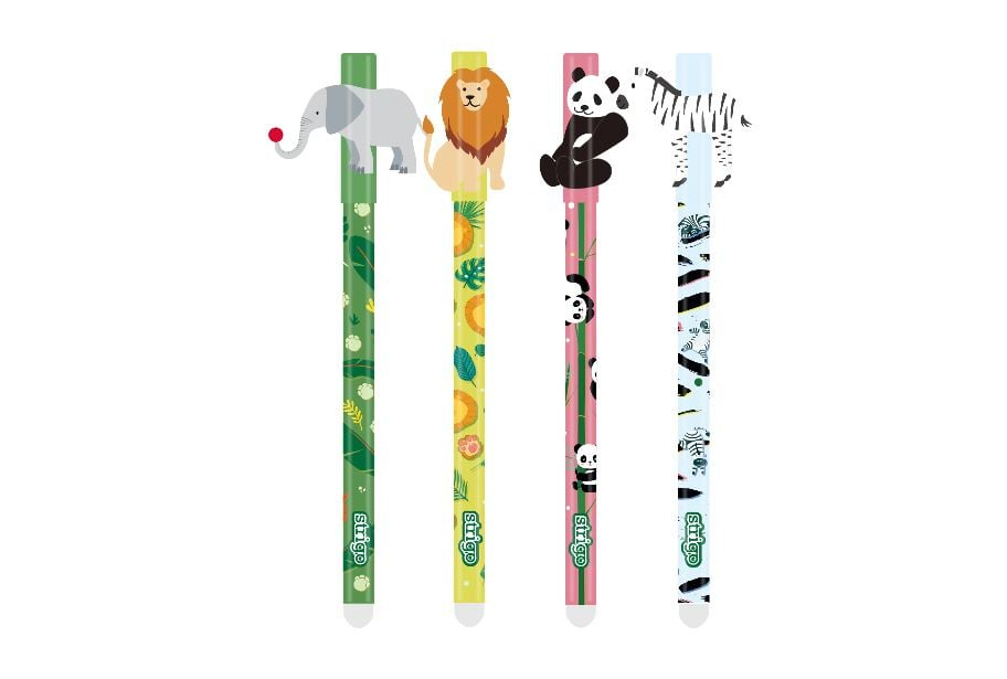 Pixul cu cerneală termosensibilă Strigo - model Zoo este un accesoriu versatil, perfect pentru a încuraja creativitatea copiilor. Decorat cu personaje atrăgătoare din zoologie și disponibil în diverse culori, acest pix permite ștergerea ușoară a ceea ce a fost scris, datorită gumei integrate.