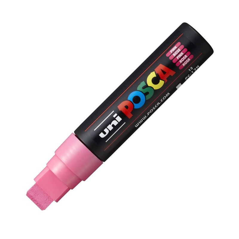 Markerul UNI Posca este prietenul ideal pentru micii artiști și pentru pasionații de creație! Cu un vârf de 15 mm, acest marker în culoare roz poate fi folosit pe multe suprafețe pentru a desena și a scrie cu ușurință.