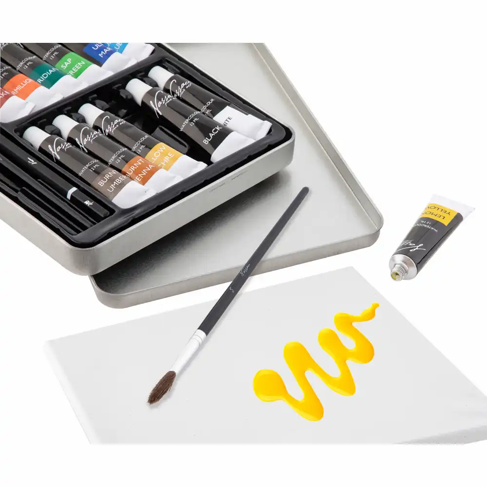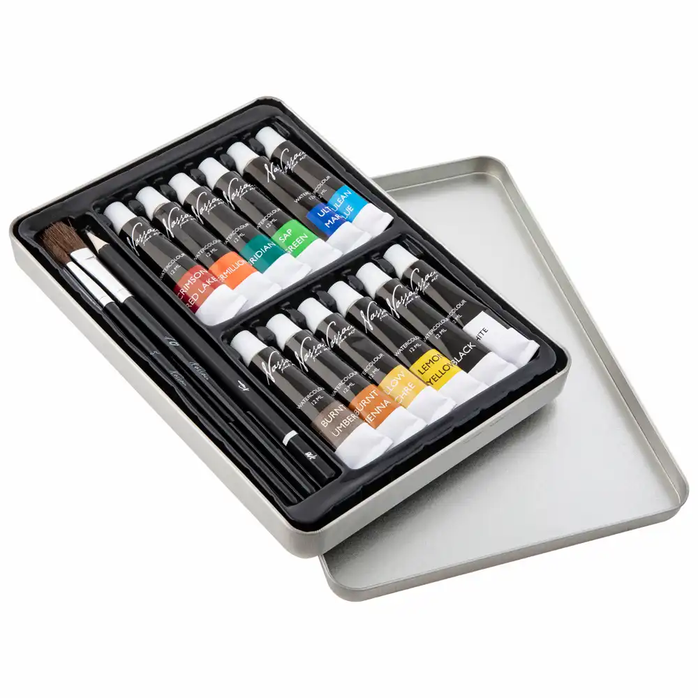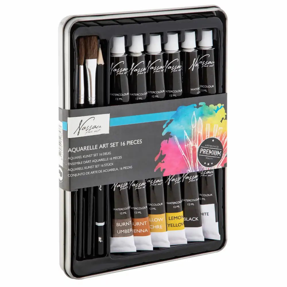 Setul de acuarele Creative Craft cu 16 piese este alegerea perfectă pentru elevi și pentru cei pasionați de artă. Conține 12 culori acrilice de 12 ml, 2 pensule și un creion grafit, toate într-o cutie de metal elegantă și practică.