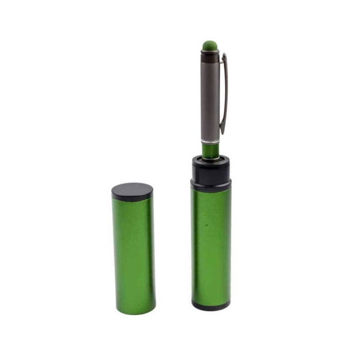Pixul metalic în tub metalic verde este un instrument de scris de înaltă calitate, dedicat celor care apreciază un design elegant și eficient. Acesta combină funcționalitatea cu estetică, făcându-l un accesoriu ideal pentru birou.