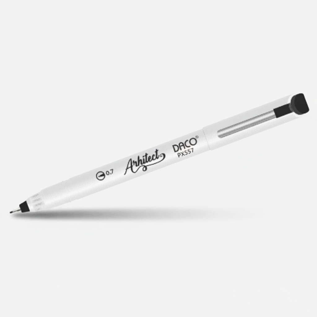 Pixul DACO Liner Grafic Arhitect 0.7mm PX557 este un instrument necesar pentru activitățile din birou, ideal pentru crearea de desene tehnice, schițe și proiecte. Cu o grosime optimă de 0.7 mm, asigură linii precise și clare, facilitând astfel procesul de lucru.
