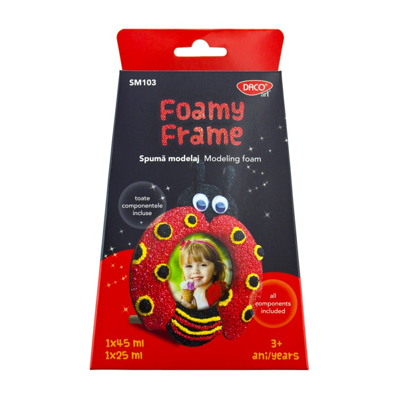 Spuma modelaj Foamy Frame DACO este un set creativ ce permite copiilor să își transforme imaginația în realitate. Cu ajutorul spumei de modelaj, cei mici pot crea o rame foto cu temă de buburuză, perfectă pentru păstrarea amintirilor frumoase.