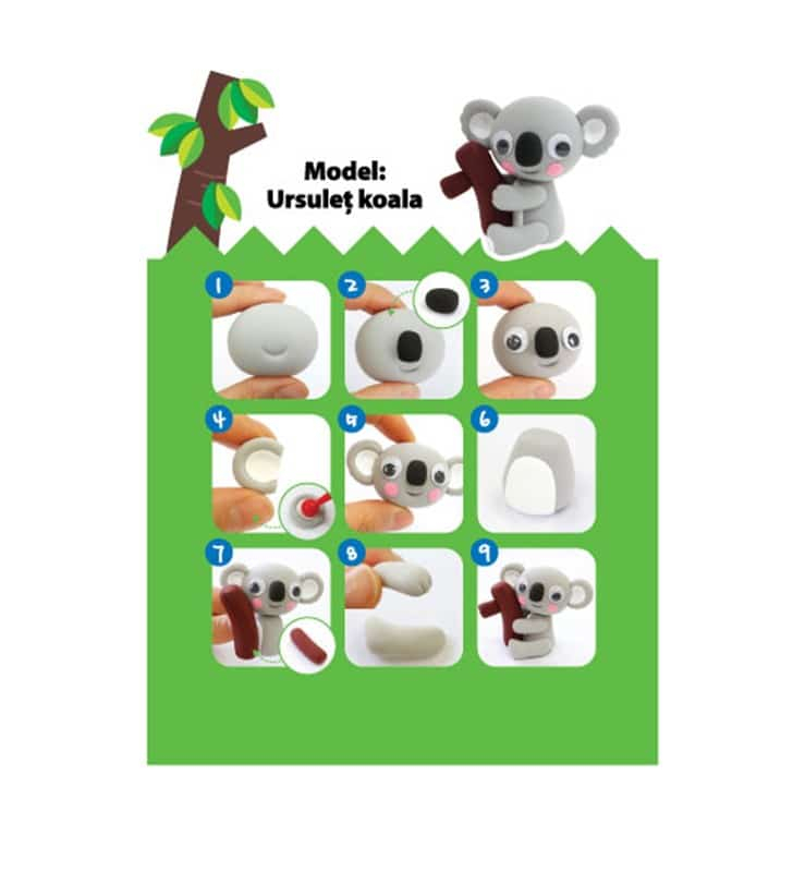 Utilizare: Moldați diverse forme, urmând instrucțiunile sau lăsându-vă imaginația liberă. Folosiți doar porții mici, astfel încât să păstrezi culorile vii.