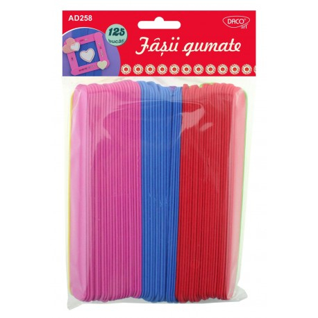 Fâsiile gumate DACO AD258 sunt accesorii versatile, ideale pentru diverse proiecte de lucru manual. Acestea se potrivesc perfect în ateliere de creație, oferind copiilor și adulților ocazia de a-și exprima imaginația.