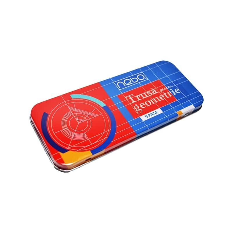 Trusa geometrie cutie metal 9 piese - NEBO este un set complet destinat elevilor și studenților, conceput pentru a sprijini activitățile educative în materii precum matematica. Această trusă de geometrie conține un compas, riglă, raportor și alte instrumente esențiale pentru realizarea de desene precise și măsurători corecte.