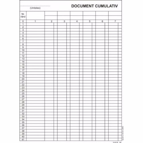 Documentul cumulativ A4 vertical este o soluție eficientă pentru organizarea și gestionarea documentelor în mediul de birou. Acesta frunza 100 de file, tipărite față/verso, optimizează procesul de lucru printr-un design inteligent care maximizează productivitatea.