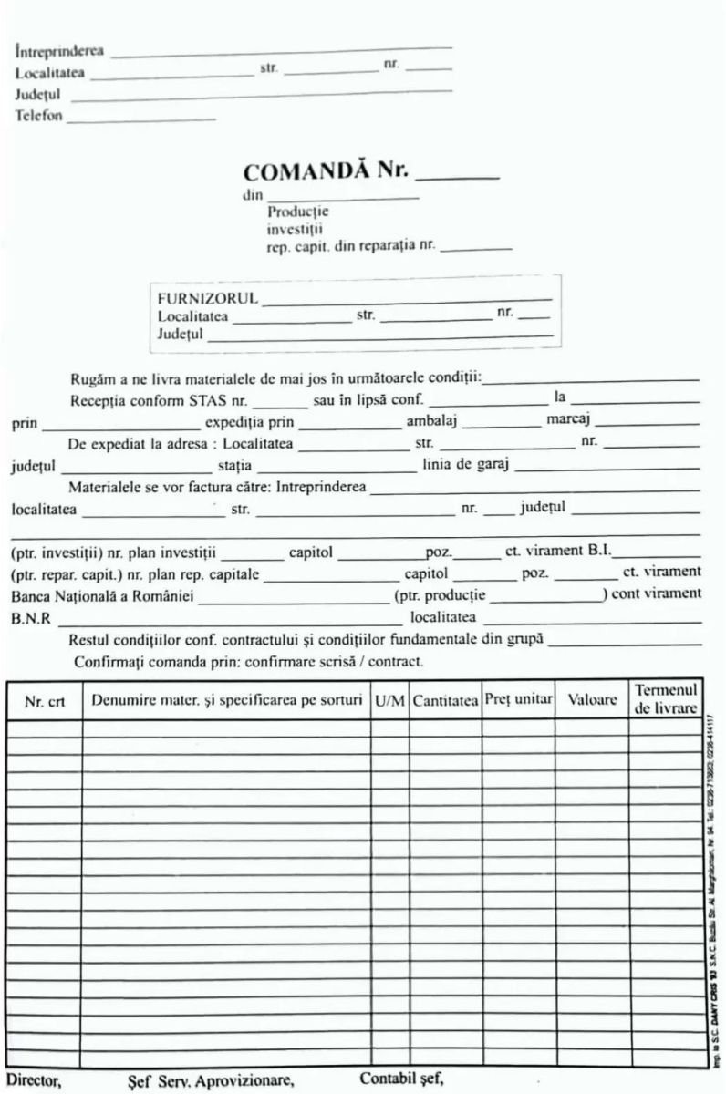 Nota comanda A4 este un formular tipizat special conceput pentru a facilita gestionarea și organizarea comenzilor. Acesta permite completarea rapidă și clară a informațiilor esențiale, contribuind la o comunicare eficientă între furnizori și clienți.