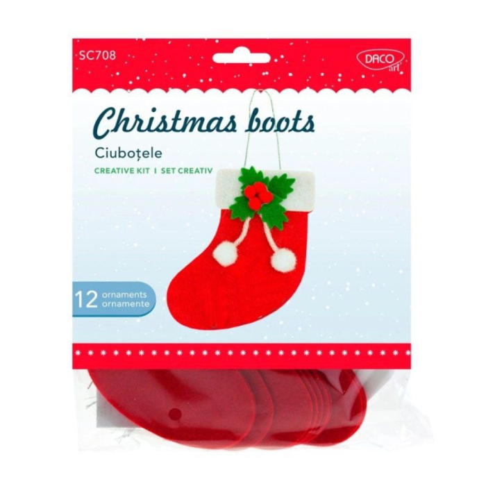 Setul creativ SC708 Ciubotele este perfect pentru toți copiii care iubesc să creeze! Făcând ciubotele din fetru, micuții pot adăuga o notă magică sărbătorilor de iarnă. Acest set include toate materialele necesare, iar instructiunile sunt simple și ușor de urmat, astfel încât fiecare copil își poate realiza propriul proiect artistic.