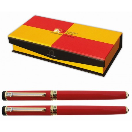 Setul Pix+Stilou Picasso 908AR este un accesoriu elegant creat pentru a îmbunătăți experiența de scriere, combinând stilul rafinat cu funcționalitatea. Este fabricat dintr-un corp metalic robust cu ornamente aurite, având un stilou cu convertor și o penită iridium placată cu aur de 22k, ceea ce asigură o durata lungă de utilizare.