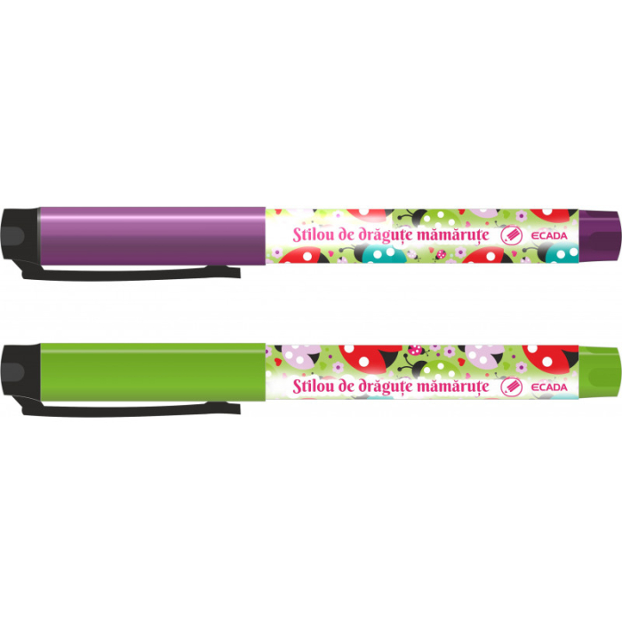 Stiloul Ecada de Drăguțe Mămăruțe este un instrument de scris versatil, perfect atât pentru elevii care doresc să-și îmbunătățească performanța școlară, cât și pentru profesioniștii din mediul de birou care caută eficiență în activitatea lor cotidiană. Acest stilou are un corp din plastic rezistent și o clemă practică, fiind disponibil cu o peniță ascunsă din iridium pentru o scriere fluidă.