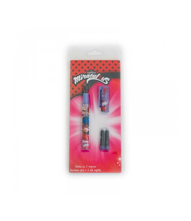 Stiloul cu 2 rezerve Miraculous este un instrument de scris versatil, perfect pentru elevi, studenți și profesioniști. Acesta dispune de un design atractiv și este livrat cu două rezerve cu cerneală pentru a asigura o utilizare îndelungată. Este ideal pentru scrierea notelor, realizarea temelor și participarea la examene.